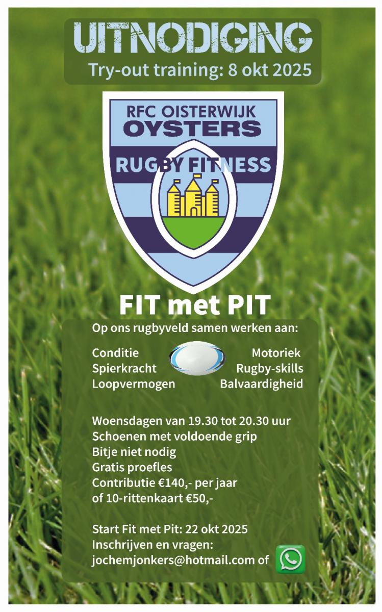 Dus wil je ervaren hoe het is om lekker bezig te zijn met rugby? Doe eens mee met Fit met Pit!