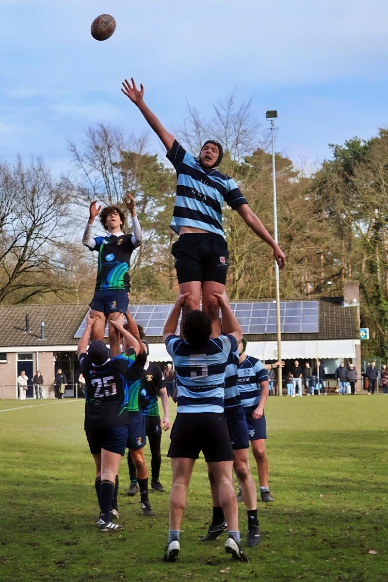 Na een warming-up van een halfuurtje begonnen we de wedstrijd sterk met 3 vroege tries, helemaal links achterin, waarvan de conversies helaas niet benut konden worden. Daarna maakte Mees een try, waarvan hij de conversie wel wist te benutten, waardoor we bij rust 22-0 voorstonden.