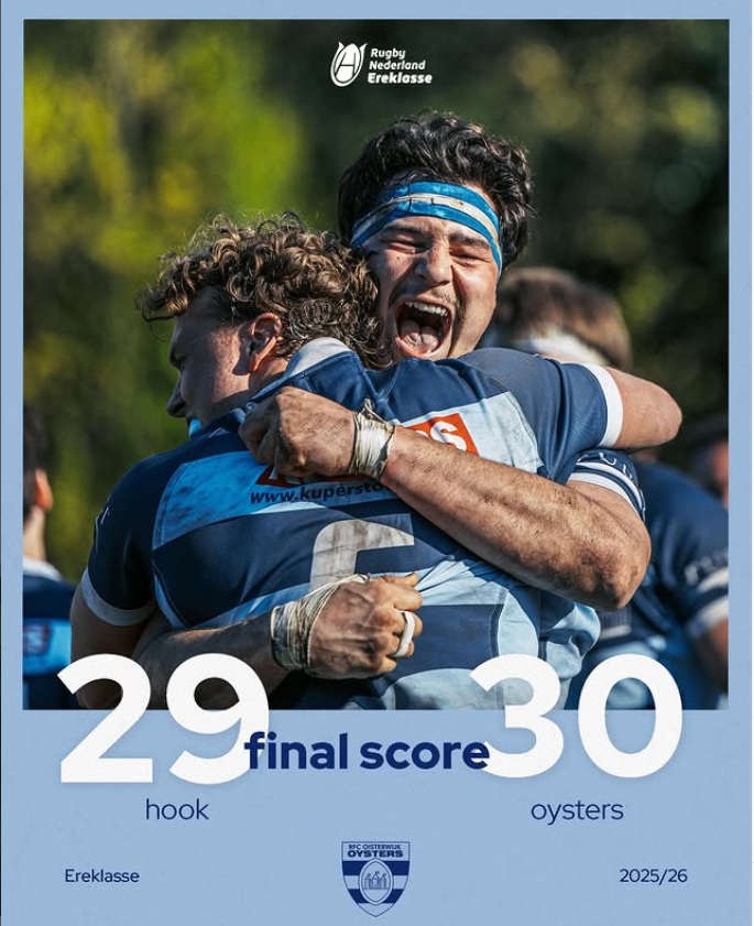 Een kwariertje in de tweede helft wist Captain Jip Schaapveld een makkelijke gewonnen line-out tot try te promoveren. En zo bleef het maar doorgaan. De Oysters speelden vooral gedisciplineerd, de Hookers lieten op dat vlak de teugels teveel vieren. Na een mooie aanval vanuit de 3-kwarten was het wederom Vicente Vegar die de bal over de achterlijn liep en de Oysters nog comfortabeler aan de leidingm hielp. Valngrijk ook: de vierde try dus 5 punten voor de “blauwen” uit Oisterwijk. En hoe hard de Hookers ook werkten, vlak voor tijd bracht José Tomas Diaz, die al de hele middag een plaag was voor zijn directe tegenstander de eindstand op het bord: 10-38.