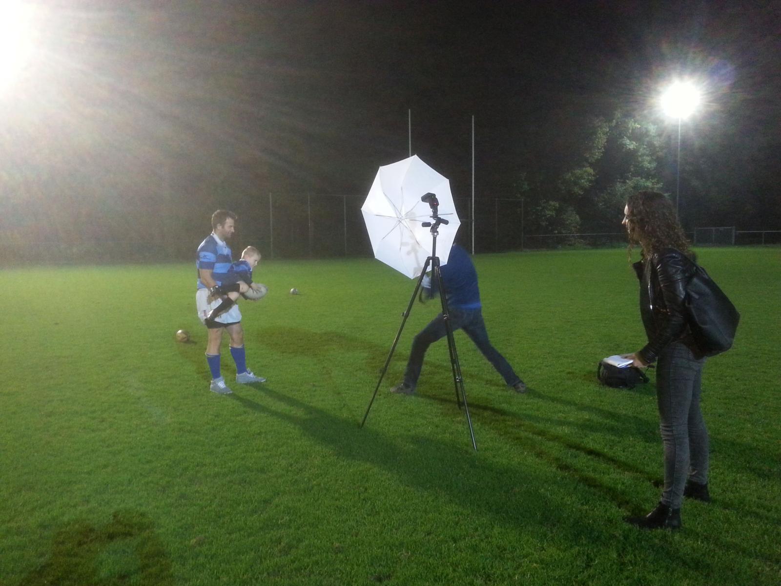 Roran van Campen (als een van de jongste Oyster-telgen) poseert samen met Dirk Willems (ex-international) voor de fotograaf van het Brabants Dagblad. Aanstaande zaterdag komt in het Regiokatern (voor het hele verspreidingsgebied van het Brabants Dagblad) een artikel te staan over rugby en de toenemenede populairiteit van onze sport.