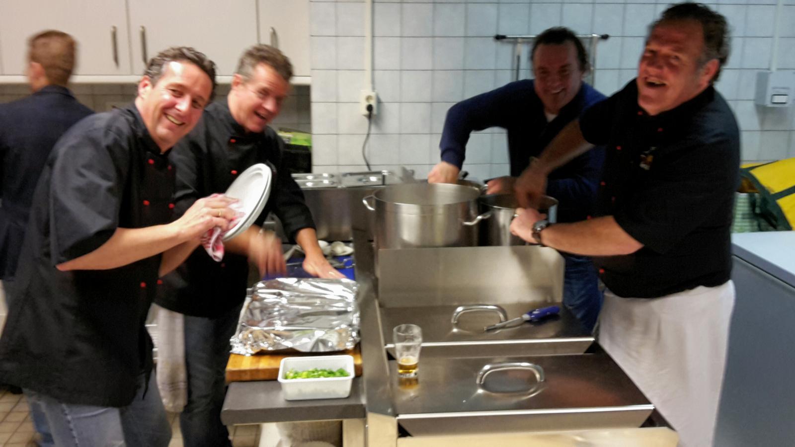 Op 11 december was het tweede Oysters Kerstdiner. Wederom werd de maaltijd verzorgd door de brigade van “Under Pressure” van ons eigen Oysters-lid John van de Avoird. De 4-gangen maaltijd was van bijzonder hoog niveau. De mannen van “Under Pressure” scoorde dit jaar al voor een plaats in de BIB Gourmand van Michelin. De chef van de brigade kondigde aan dat zijn team in de versie van 2016 minimaal voor 1-ster zouden gaan. De bediening van de avond was in handen van onze Colts.