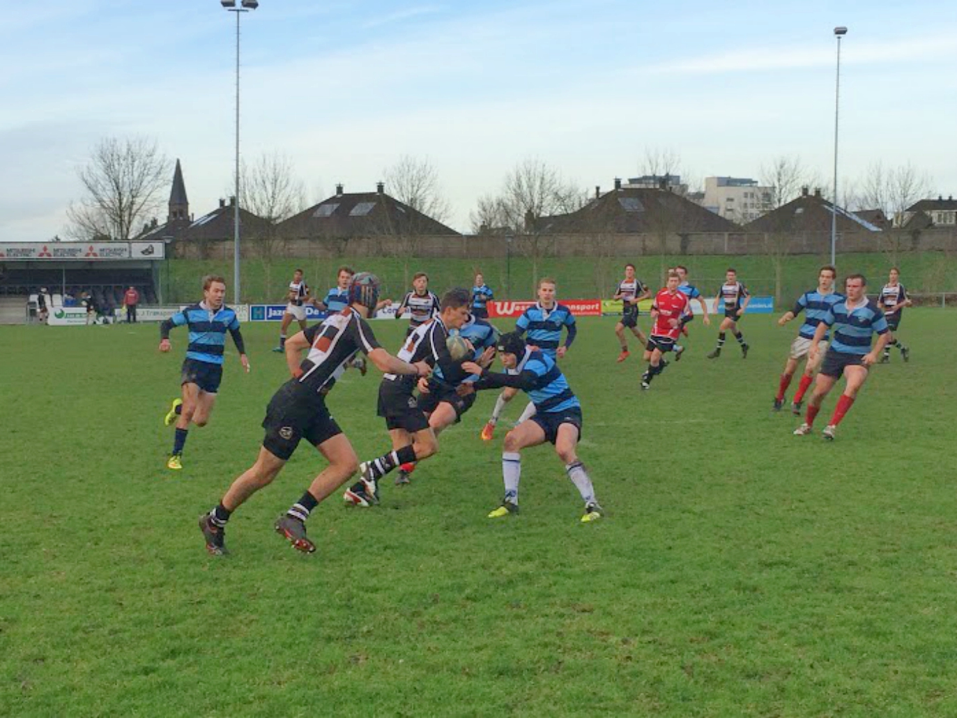 Onze spelers raakten echter steeds beter op elkaar ingespeeld en waren niet van plan om geheel te worden afgedroogd door de tegenstander. Mede doordat de scrums uncontested werden door onze incomplete eerste rij, kregen de voorwaartsen meer vat op het spel en liep het balspel in de lijn steeds beter en sneller. Aanvallen van de tegenstander werden goed verdedigd en in de laatste fase kregen wij meer de overhand op de wedstrijd. Dit werd in de laatste vijf minuten van de wedstrijd, na een mooie uitgespeelde actie van het team, beloond met een try van Joep, zodat de dertien overgebleven spelers (Matteo viel uit met gekneusde pols) ondanks een verlies van 57-14 met opgeheven hoofd het veld konden verlaten.