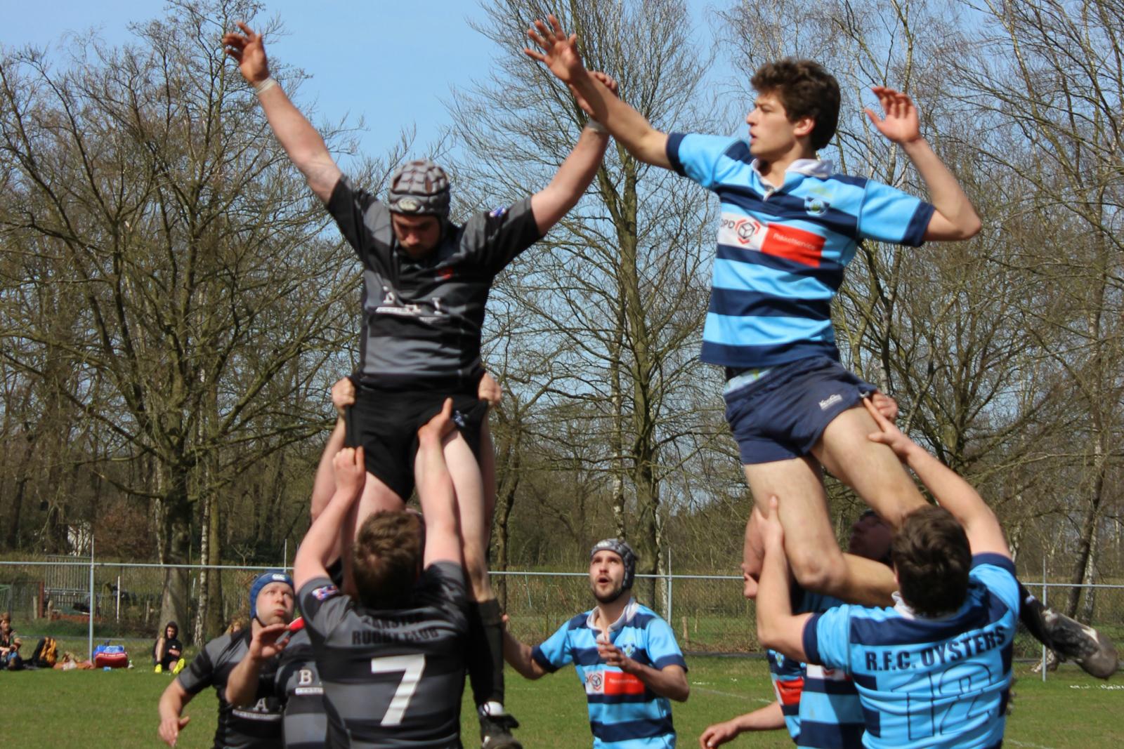 Daan was teleurgesteld omdat zijn prachtige try (na een geweldige supportplay op Wouter, die helaas zijn veel te grote voeten op de lijn had gezet), Luc omdat toch blijkt dat een kick op de palen (recht ervoor) er niet automatisch tussendoor gaat, Jim omdat zijn eerste try op het seniorenveld tot een remake van de zumba van zijn broer een paar weken eerder leidde en verder was iedereen erg blij om na de wedstrijd de hulde van onze tegenstrevers te mogen ontvangen gelardeerd met een kan bier (niet omdat het moet, maar omdat het kan).
