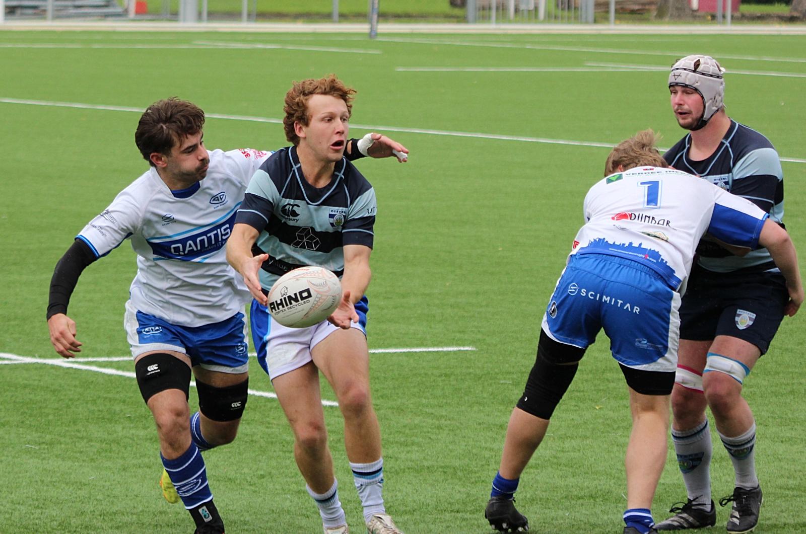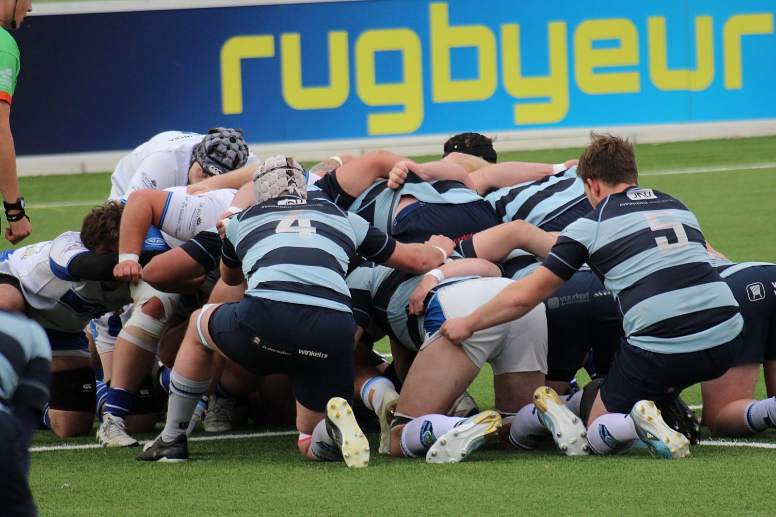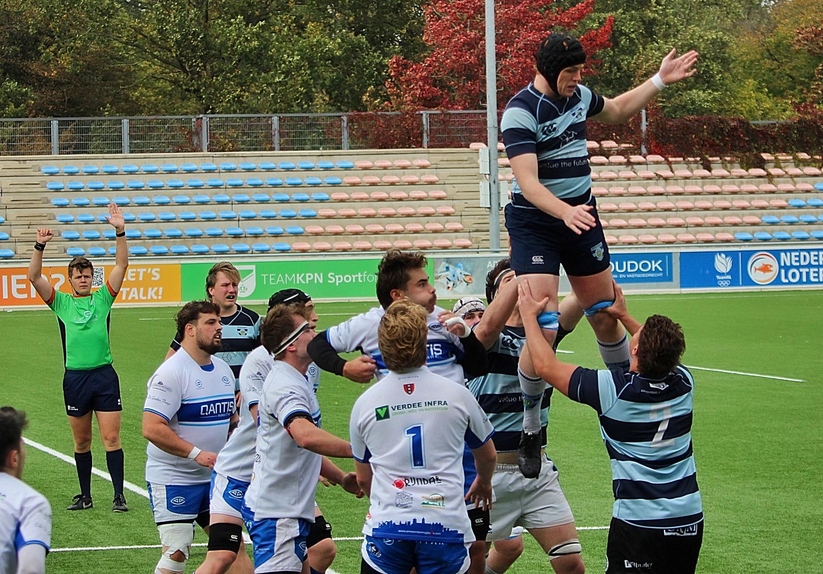 De voorwaartsen namen het initiatief. Nadat nummer 10, Manus Bailey, de Oysters via een penaltykick op voorsprong had gezet, was het de uitblinkende prop Will Stanley die na een perfect uitgevoerde line-out de eerste try drukte. Even later herhaalde tweede-rijer Mitchell Thijs het kunstje met een krachtige drive over de lijn. De front eight heerste, het rugbyadagium “de voorwaartsen bepalen of je wint, de backs met hoeveel” werd vandaag opnieuw bewezen. Amsterdam gaf zich echter niet gewonnen en noteerde vlak voor rust een eigen try: 7–17 bij het fluitsignaal, een mooie marge — maar met windkracht zes tegen in de tweede helft, verre van comfortabel.