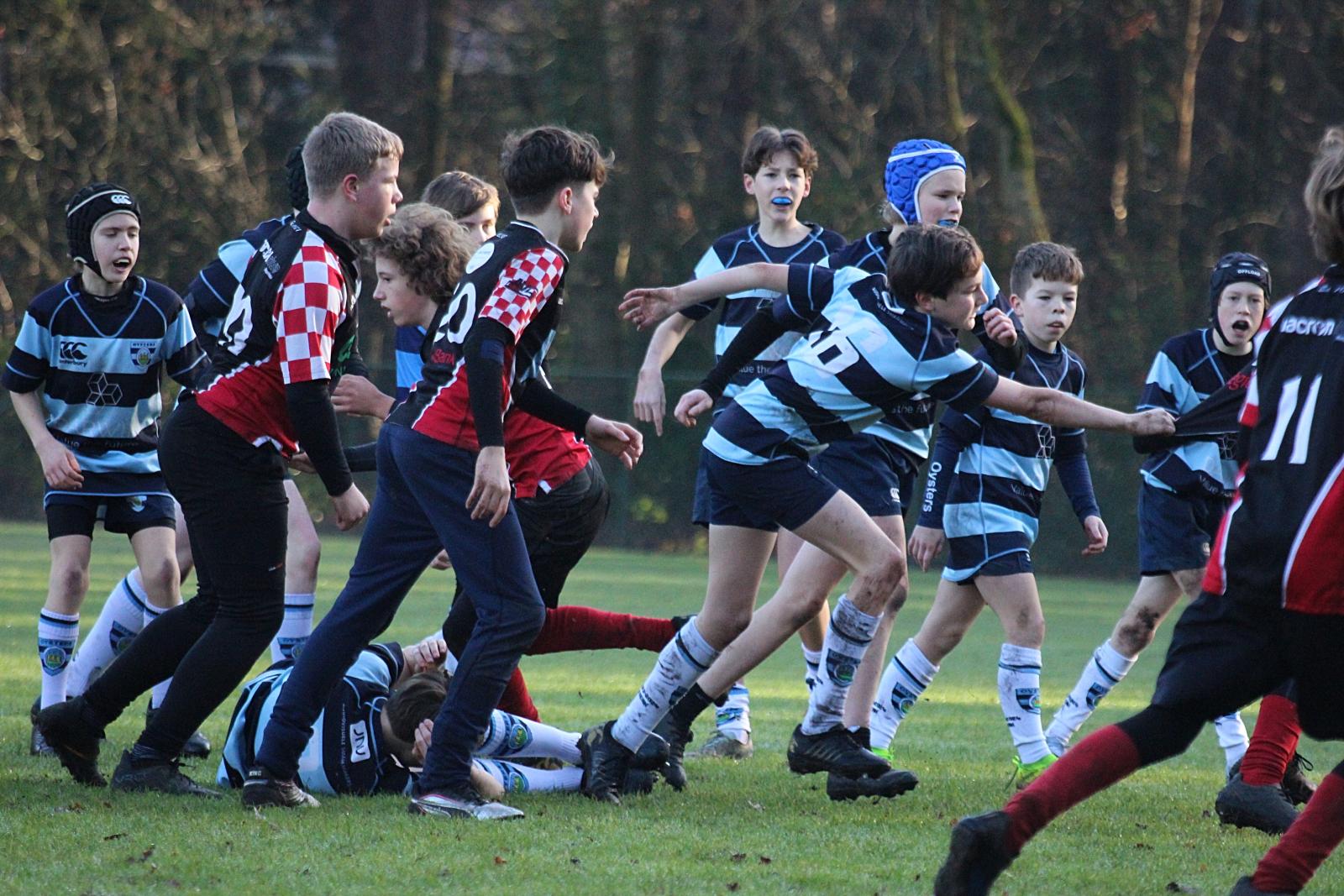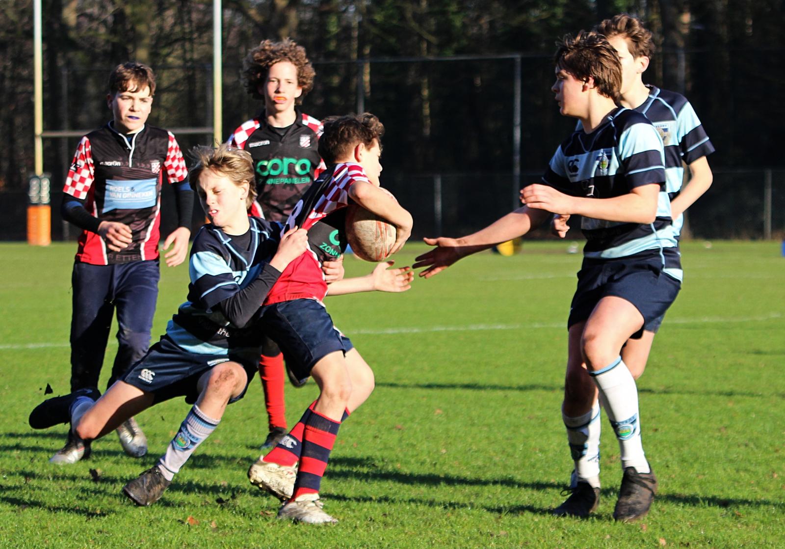 Maar de tegenstander begon fel en een grote speler van hun liep door onze verdediging. Gelukkig wisten we snel tegen te scoren en hadden we ook het beste van het spel.