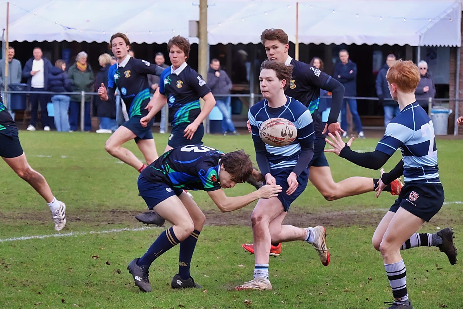 Na een warming-up van een halfuurtje begonnen we de wedstrijd sterk met 3 vroege tries, helemaal links achterin, waarvan de conversies helaas niet benut konden worden. Daarna maakte Mees een try, waarvan hij de conversie wel wist te benutten, waardoor we bij rust 22-0 voorstonden.